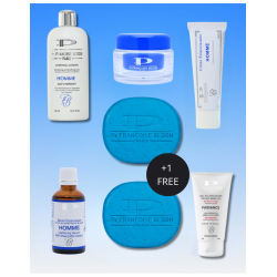Le Pack Homme Pr. Françoise Bedon regroupe une sélection de soins destinés à la routine quotidienne visage et corps. Il comprend un Baume Homme, une CrèmeTube Homme, un Lait Homme, un Sérum Homme ainsi que deux Savons Homme, dont un savon offert. Ce pack permet d’associer plusieurs textures et usages complémentaires au sein d’un même ensemble, avec un avantage prix par rapport à l’achat séparé des produits.