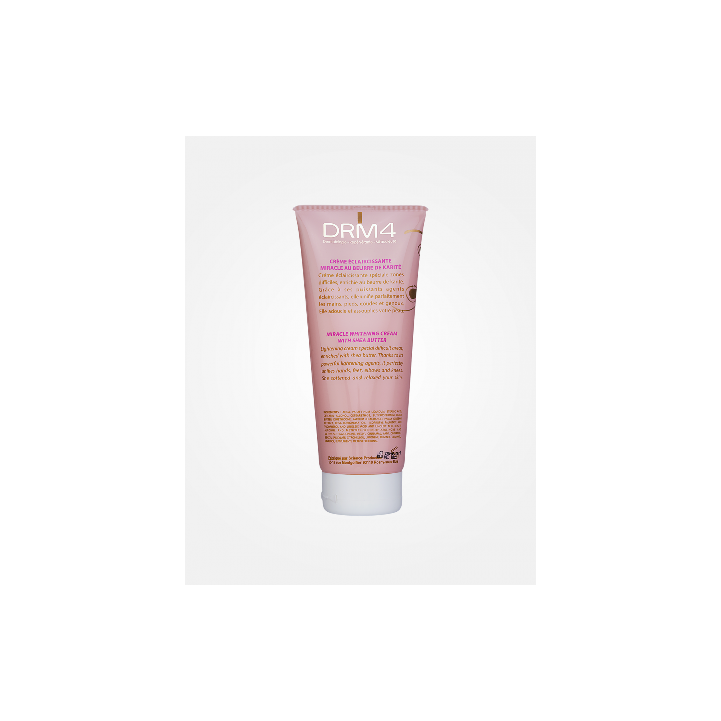 Crème éclaircissante pour zones ciblées enrichie en beurre de karité, formulée pour les mains, pieds, coudes et genoux afin d’unifier et d’assouplir la peau.